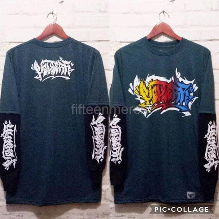 Kaos Baju Distro Lengan Panjang Sambung Grafitti Art Tulisan Gravitti