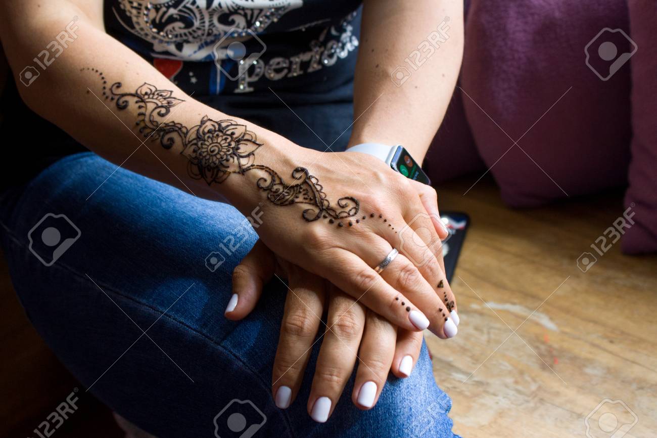 Beauty And Fashion Concept Henna Tattoo On Women Hands Mehndi