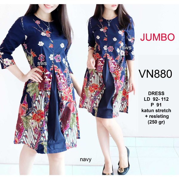 Terbarumurah Dress Batik Jumbo Wanita Modern Dress Batik Big Size Wanita Baju Kerja Batik Dress